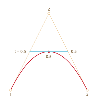 x = (1−t)2x1 + 2(1−t)tx2 + t2x3y = (1−t)2y1 + 2(1−t)ty2 + t2y3