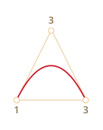 Степень кривой равна числу точек минус один. Для двух точек – это линейная кривая (т.е. прямая), для трёх точек – квадратическая кривая (парабола), для четырёх – кубическая.