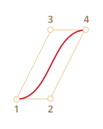 Как можно заметить, кривая натянута по касательным 1 → 2 и 3 → 4.