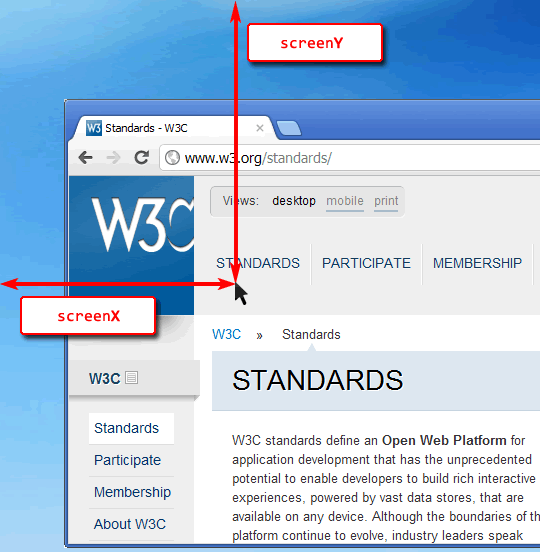 Координаты на экране screenX/screenY