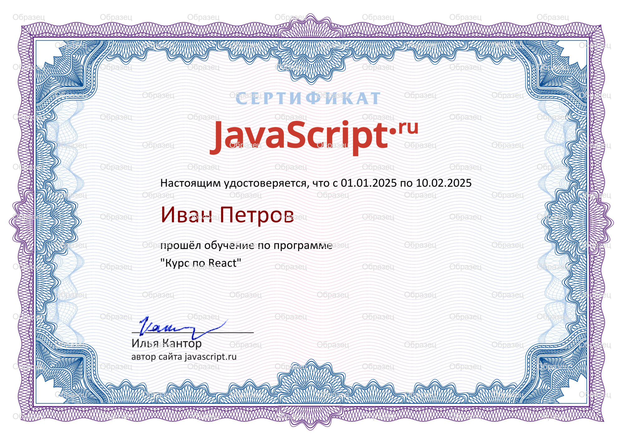 По окончанию курсов вы получаете сертификат в электронном виде на русском и английском языках.