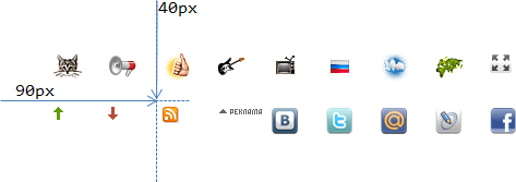 Иконка RSS находится в нём на координатах (90px, 40px):