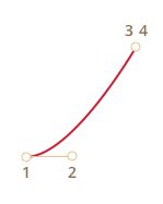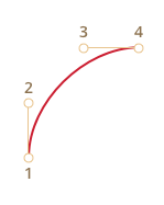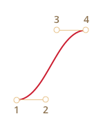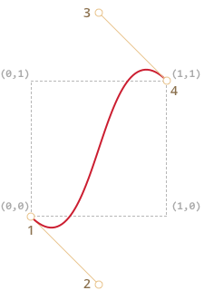 Синтаксис для задания кривой Безье в CSS: cubic-bezier(x2, y2, x3, y3). В нём указываются координаты только двух точек: второй и третьей, так как первая и последняя фиксированы.