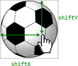 Получить значения shiftX/shiftY легко: достаточно вычесть из координат курсора pageX/pageY левую-верхнюю границу мячика, полученную при помощи функции getCoords.