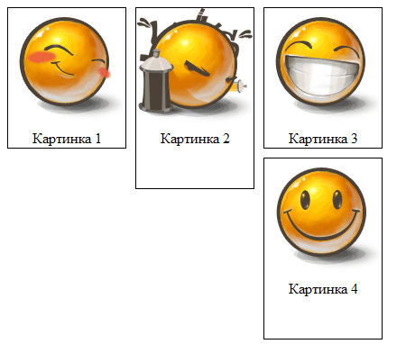 2. Если пространства по горизонтали не хватает для того, чтобы вместить элемент, то он сдвигается вниз до тех пор, пока не начнёт помещаться.