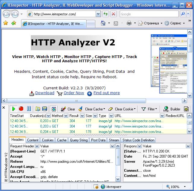 Один из них – Fiddler. Другой – IE HTTP Analyzer, который представляет собой «другой угол зрения» на задачу.