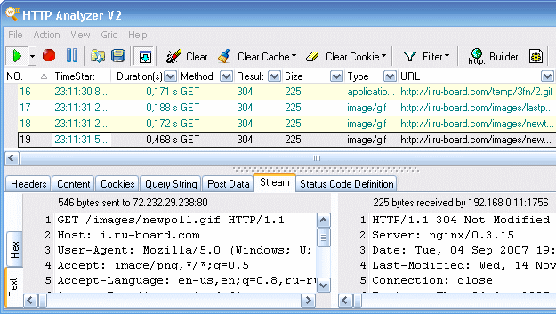 Эта «потоковость» IE Http Analyzer- один из важных его плюсов.