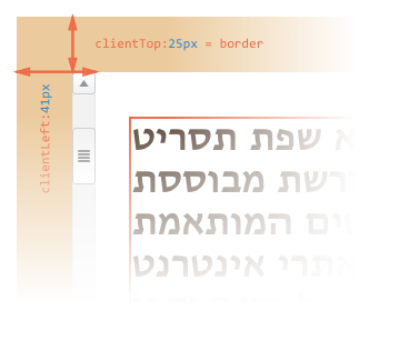 Она возникает тогда, когда документ располагается справа налево (операционная система на арабском языке или иврите). Полоса прокрутки в этом случае находится слева, и тогда свойство clientLeft включает в себя ещё и ширину полосы прокрутки.