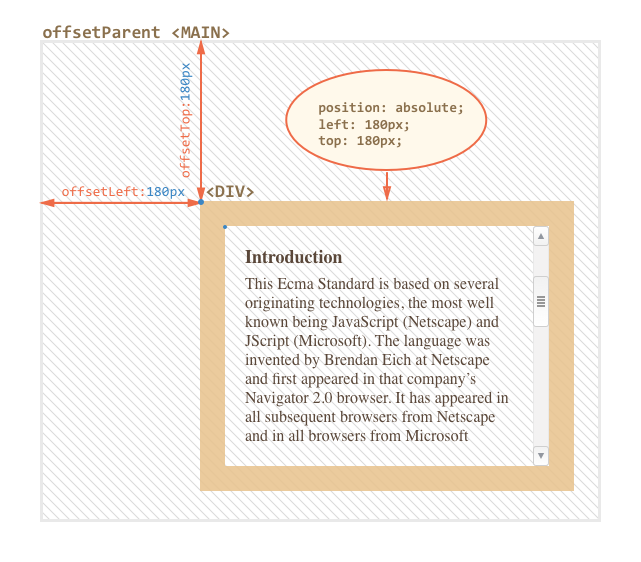 Получается, что элемент имеет в дополнение к обычному родителю в DOM – ещё одного «родителя по позиционированию», то есть относительно которого он рисуется. Этот элемент и будет в свойстве offsetParent.