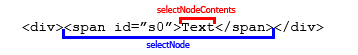 selectNodeиselectNodeContentsпозволяют создать объектRangeпо границам узла, ссылку на который они принимают в качестве единственного аргумента. При использованииselectNodeпередаваемый узел также войдёт вRange, в то время какselectNodeContentsсоздаст объект только из содержимого узла: