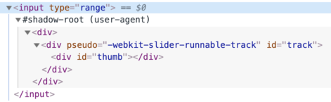 attachShadow(и, скорее всего, она будет спрятана внутри класса). Встроенные браузерные теневые деревья, такие как у<input type="range">, закрыты. До них не добраться.