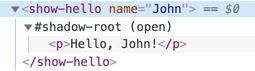 Например, этот <show-hello> элемент прячет свой внутренний DOM в теневом дереве: