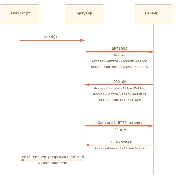 Origin– домен, с которого сделан запрос.Access-Control-Request-Method– желаемый метод.Access-Control-Request-Headers– желаемый «непростой» заголовок.